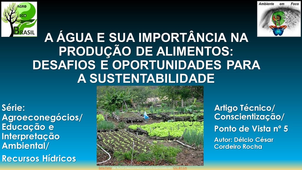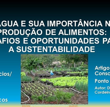 Portal AMBIENTEEMFOCO. ROCHA, D. C. C. A Água e sua Importância na Produção de Alimentos: Desafios e Oportunidades para a Sustentabilidade. Disponível em: https://ambienteemfoco.com/a-agua-e-sua-importancia-na-producao-de-alimentos-desafios-e-oportunidades-para-a-sustentabilidade. Série: Perigo em Foco. Artigo técnico/Conscientização/Ponto de Vista nº 5. Publicado em 2024. Acesso em DIA/ MÊS/ ANO