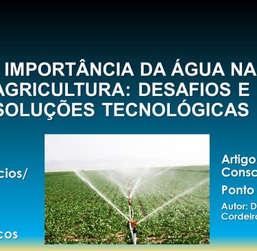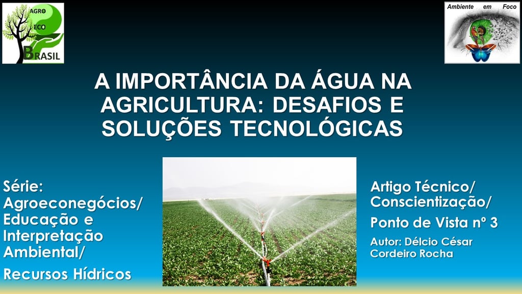 Portal AMBIENTEEMFOCO. ROCHA, D. C. C. A Importância da Água na Agricultura: Desafios e Soluções Tecnológicas. Disponível em: https://ambienteemfoco.com/a-importancia-da-agua-na-agricultura-desafios-e-solucoes-tecnologicas. Série: Perigo em Foco. Artigo técnico/Conscientização/Ponto de Vista nº 3. Publicado em 2024. Acesso em DIA/ MÊS/ ANO