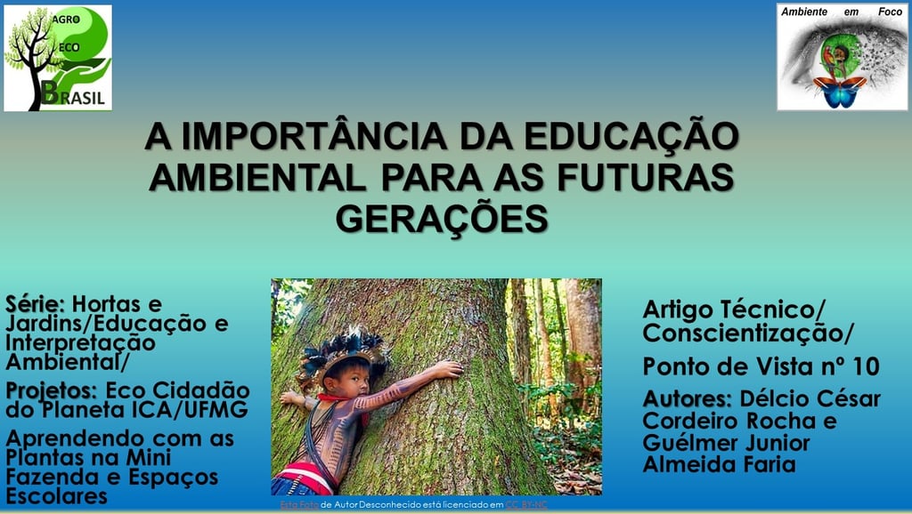 Portal AMBIENTEEMFOCO. ROCHA, D. C. C.; FARIA, G. J. A. A Importância da Educação Ambiental para as Futuras Gerações. Disponível em: https://ambienteemfoco.com/a-importancia-da-educacao-ambiental-para-as-futuras-geracoes. Artigo técnico/ Conscientização/Ponto de Vista nº10. Série: Hortas e Jardins/Educação e Interpretação Ambiental/ Projetos: Eco Cidadão do Planeta ICA/UFMG e Aprendendo com as Plantas na Mini Fazenda e Espaços Escolares. Publicado em 2024. Acesso em DIA/ MÊS/ ANO