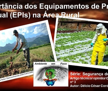 Portal AMBIENTE EM FOCO. ROCHA, Délcio César Cordeiro. A Importância dos Equipamentos de Proteção Individual (EPIs) na Área Rural. Disponível em:https://ambienteemfoco.com/a-importancia-dos-equipamentos-de-protecao-individual-epis-na-area-rural Série: Vida e Ambiente/ Segurança do Trabalho. Artigo Técnico/Opinião/Conscientização nº3. Publicado em 2023. Acesso em DIA/ MÊS/ ANO