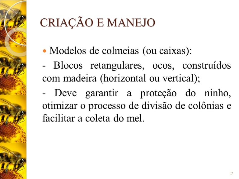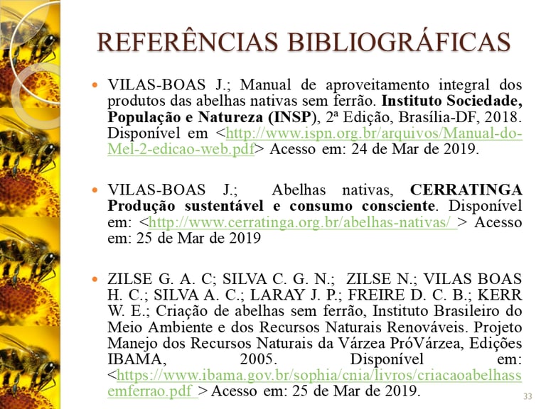 Portal AMBIENTEEMFOCO. ANDRADE, V. O. & ROCHA, D. C. C. Abelhas Silvestres, Criação e Manejo. Série: Animais Silvestres/ Abelhas. Artigo técnico nº 3. Publicado em 2022. Disponível em: https://ambienteemfoco.com/abelhas-silvestres-criacao-e-manejo Acesso em DIA/ MÊS/ ANO