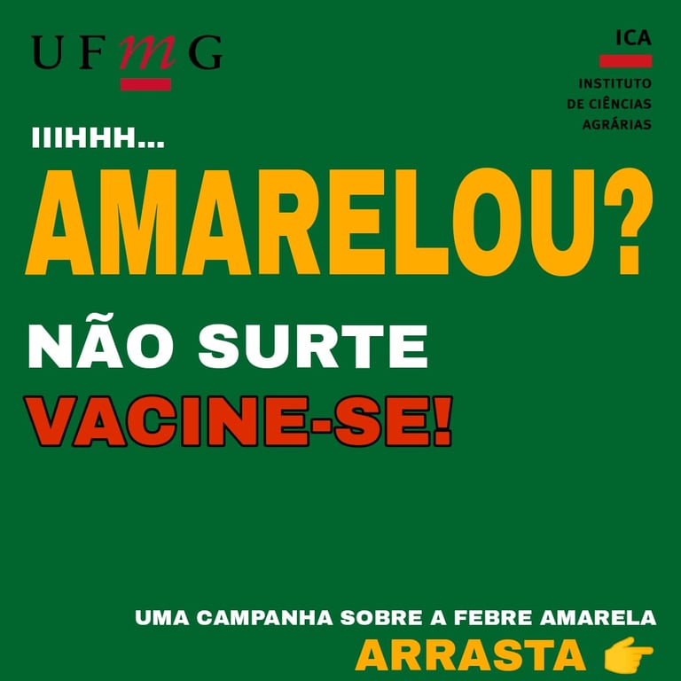 Portal AMBIENTE EM FOCO. ROCHA, Délcio César Cordeiro. Febre Amarela, amarelou não surte. Disponível em: https://ambienteemfoco.com/amarelou-nao-surte Série: Zoologia/Educação e Interpretação Ambiental/ Zoonoses. Campanha /Opinião/ Folder/Conscientização nº2. Publicado em 2023. Acesso em DIA/ MÊS/ ANO