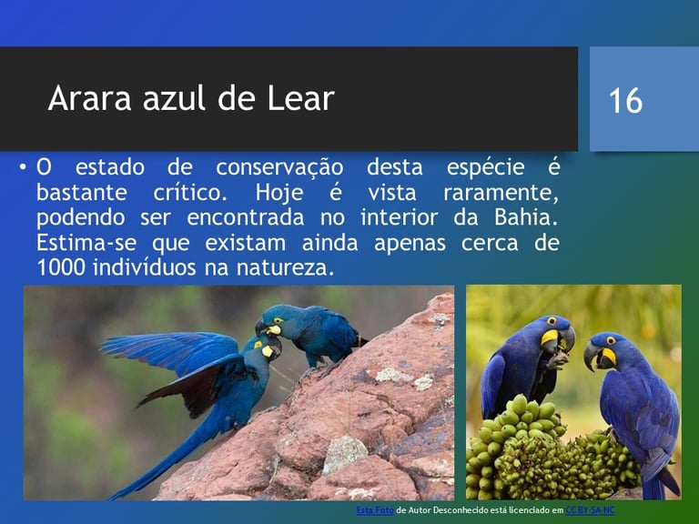 https://www.institutoararaazul.org.br/especie/arara-azul-de-lear/ Acesso em abril de 2022