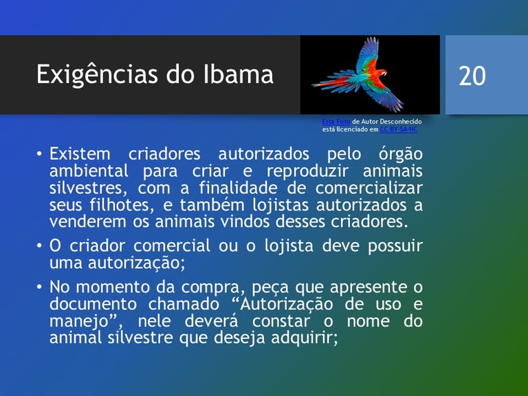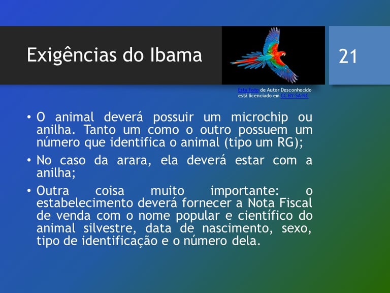 Para conseguir essa autorização, o interessado deve apresentar uma série de documentos que geralmente incluem um projeto de manejo, a identificação do viveiro, e a comprovação de que as araras são adquiridas de fornecedores que também operam de acordo com a legislação. Além disso, é fundamental que o criador solicite o documento de 'autorização de uso e manejo' no momento da compra das araras. Esse documento é um atestado que garante que as aves foram adquiridas de fontes legais e que os direitos sobre sua posse estão devidamente regulamentados.