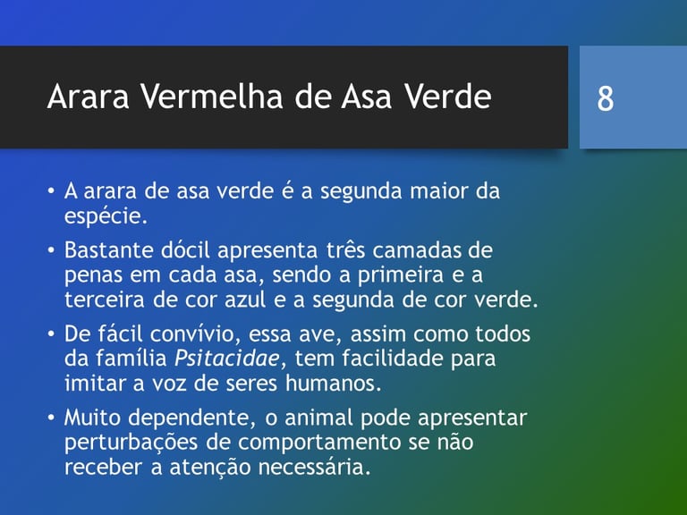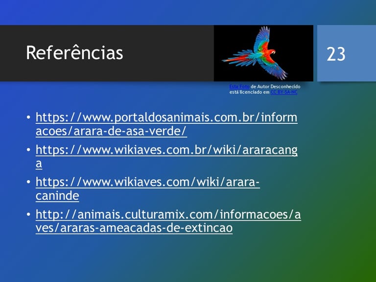 https://www.portaldosanimais.com.br/informacoes/arara-de-asa-verde/ Acesso em abril de 2022