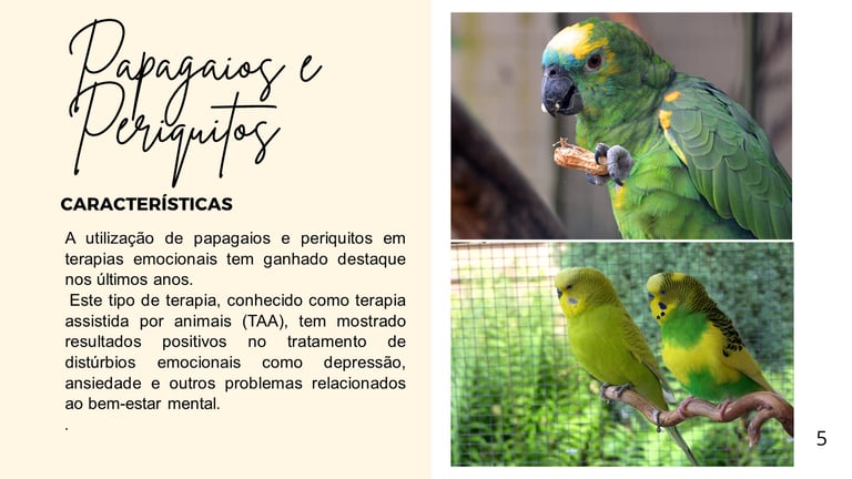 Portanto, enquanto papagaios e periquitos continuam a ser valiosos aliados nas terapias emocionais, é importante que seu cuidado seja uma prioridade para maximizar os benefícios terapêuticos e garantir o bem-estar desses animais extraordinários.