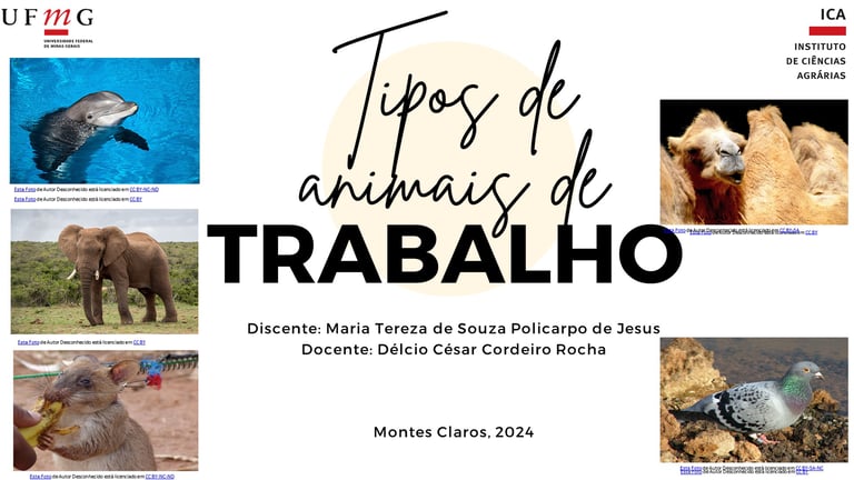 Conheça algumas espécies de Camelos e Dromedários, Elefantes, Pombos-correios, Golfinhos e Baleias Orca. utilizadas para trabalho no Brasil e no Mundo. Autora: Maria Tereza Policarpo de Jesus Série: Zootecnia/ Animais de trabalho/Camelos e Dromedários, Elefantes, Pombos- Correio, Golfinhos e Baleias Orca. nº4 Prof. Orientador: Délcio César Cordeiro Rocha Disciplina: Criação e Exploração de Animais Domésticos Curso: Eng. Agrícola e Ambiental ICA/UFMG