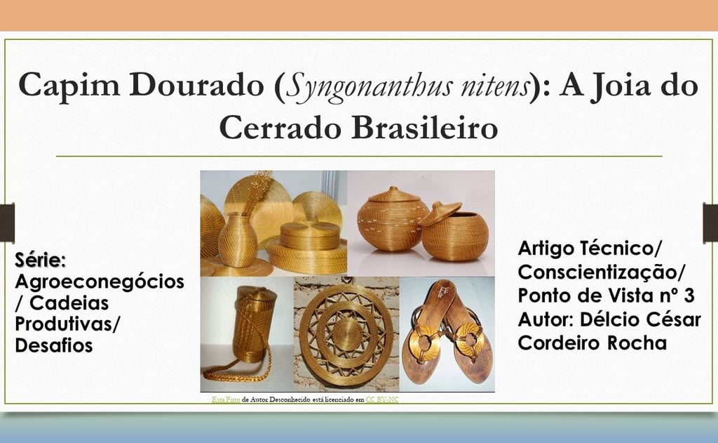 Portal AMBIENTE EM FOCO. ROCHA, Délcio César Cordeiro. Capim Dourado (Syngonanthus nitens): A Joia do Cerrado Brasileiro. Disponível em: https://ambienteemfoco.com/capim-dourado-syngonanthus-nitens-a-joia-do-cerrado-brasileiro. Série: Biojóias/ Agroeconegócios. Ponto de Vista/Artigo técnico nº3. publicado em 2025. Acesso em DIA/ MÊS/ ANO