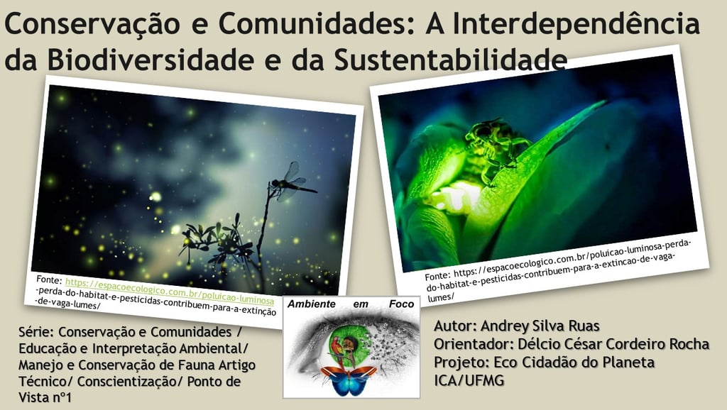 Portal AMBIENTEEMFOCO. RUAS, A. S.; ROCHA, D. C. C. Conservação e Comunidades: A Interdependência da Biodiversidade e da Sustentabilidade. Disponível em: https://ambienteemfoco.com/conservacao-e-comunidades-a-interdependencia-da-biodiversidade-e-da-sustentabilidade Série: Conservação e Comunidade/Educação e Interpretação Ambiental/Conservação e Manejo de Fauna. Artigo técnico/Conscientização/Ponto de Vista nº 1. Publicado em 2024. Acesso em DIA/ MÊS/ ANO