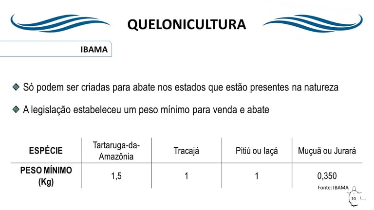 A legislação estabeleceu um peso mínimo para venda e abate (slide 09).