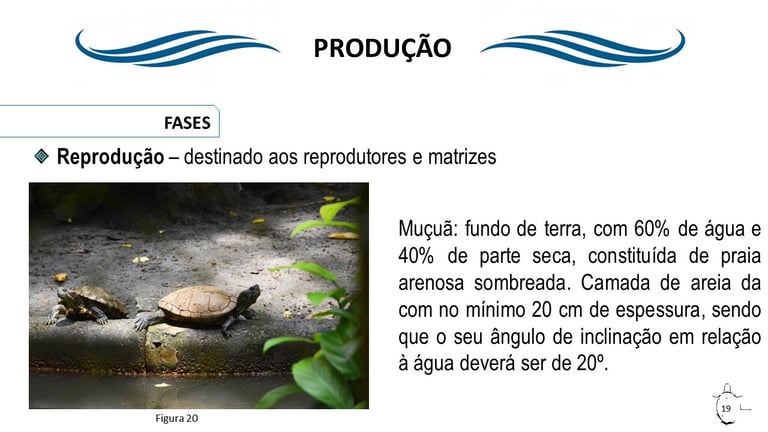 Para Muçuã: fundo de terra, com 60% de água e 40% de parte seca, constituída de praia arenosa sombreada. Camada de areia da com no mínimo 20 cm de espessura, sendo que o seu ângulo de inclinação em relação à água deverá ser de 20º.