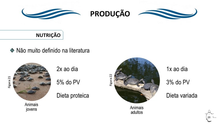 Para filhotes e jovens: indica-se uma dieta proteica sendo fornecido duas vezes ao dia sendo 5% do Peso vivo;