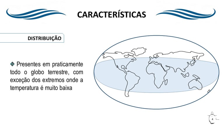 Presentes em praticamente todo o globo terrestre, com exceção dos extremos onde a temperatura é muito baixa