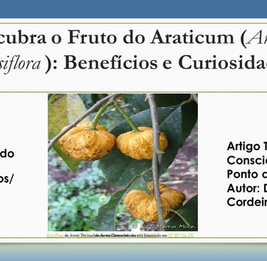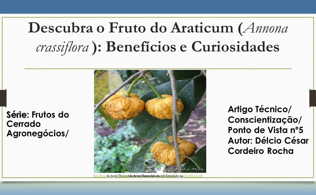 Portal AMBIENTE EM FOCO. ROCHA, Délcio César Cordeiro. Descubra o Fruto do Araticum (Annona crassiflora ): Benefícios e Curiosidades. Disponível em https://ambienteemfoco.com/descubra-o-fruto-do-araticum-annona-crassiflora-beneficios-e-curiosidades Série: Frutos do Cerrado/ Agroeconegócios. Ponto de Vista/Artigo técnico nº5. publicado em 2025. Acesso em DIA/ MÊS/ ANO