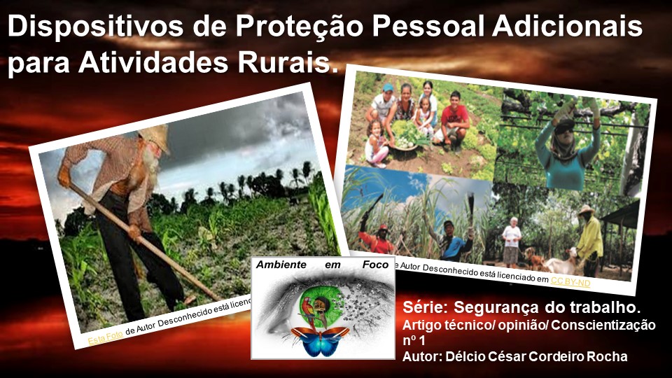 Portal AMBIENTE EM FOCO. ROCHA, Délcio César Cordeiro. Dispositivos de Proteção Pessoal Adicionais para Atividades Rurais. Disponível em: https://ambienteemfoco.com/dispositivos-de-protecao-pessoal-adicionais-para-atividades-rurais Série: Vida e Ambiente/ Segurança do Trabalho. Artigo Técnico/Opinião/Conscientização nº1. Publicado em 2023. Acesso em DIA/ MÊS/ ANO