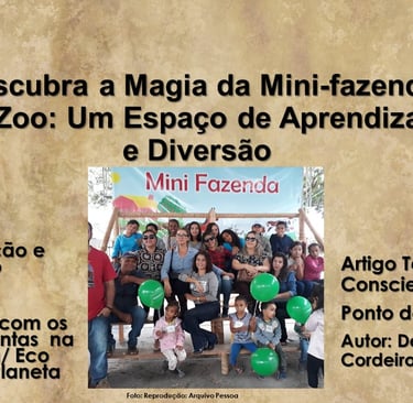 Série: A Educação em Espaços Não Formais/Edições da Mini-Fazenda Dr. Zoo Projetos: Aprendendo com os Animais e Plantas na Mini-Fazenda/ Eco Cidadão do Planeta ICA/UFMG. Artigo Técnico/ Conscientização/ Ponto de Vista. Autor: Délcio César Cordeiro Rocha ICA/UFMG