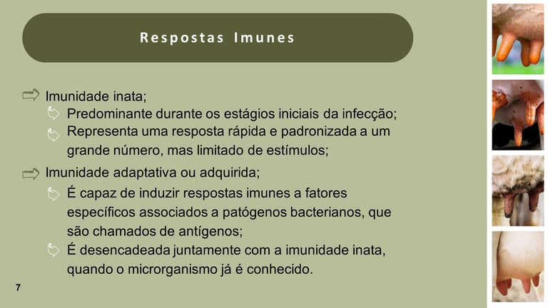 A imunidade inata é predominante durante os estágios iniciais da infecção (CARNEIRO et al., 2009) e inclui um conjunto de mecanismos de resistência que podem ser acionados em segundos a minutos após o desafio bacteriano (SORDILLO, 2018).