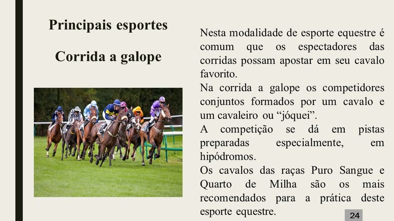 Portal AMBIENTEEMFOCO. SOUZA, A. G.; SOUZA, H. B. & ROCHA, D. C. C. Equinos de Sela, Principais Raças e Esportes. Série: Desmistificando a Zootecnia/ Equinocultura. Artigo técnico/Vídeo/Campanha nº 6. Publicado em 2022. Disponível em: https://ambienteemfoco.com/equinocultura-de-sela-principais-racas-e-esportes Acesso em DIA/ MÊS/ ANO