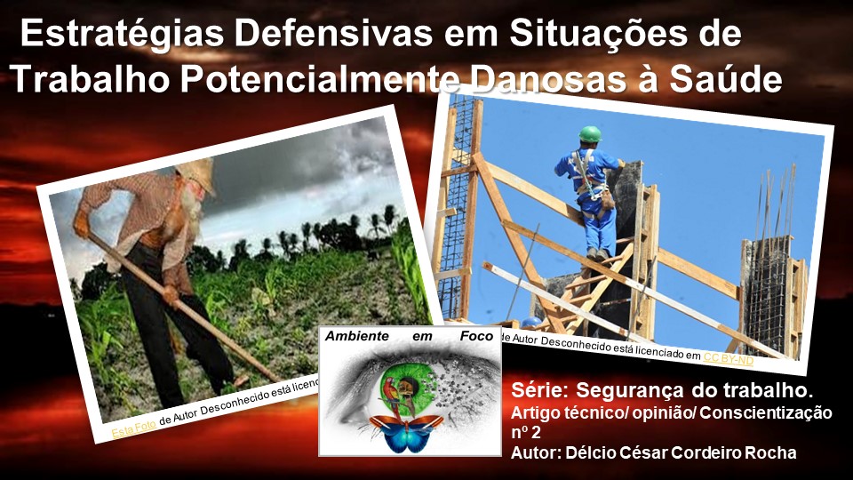 Portal AMBIENTE EM FOCO. ROCHA, Délcio César Cordeiro. Estratégias Defensivas em situações de trabalho Potencialmente Danosas à Saúde. Disponível em: https://ambienteemfoco.com/estrategias-defensivas-em-situacoes-de-trabalho-potencialmente-danosas-a-saude Série: Vida e Ambiente/ Segurança do Trabalho. Artigo Técnico/Opinião/Conscientização nº2. Publicado em 2023. Acesso em DIA/ MÊS/ ANO