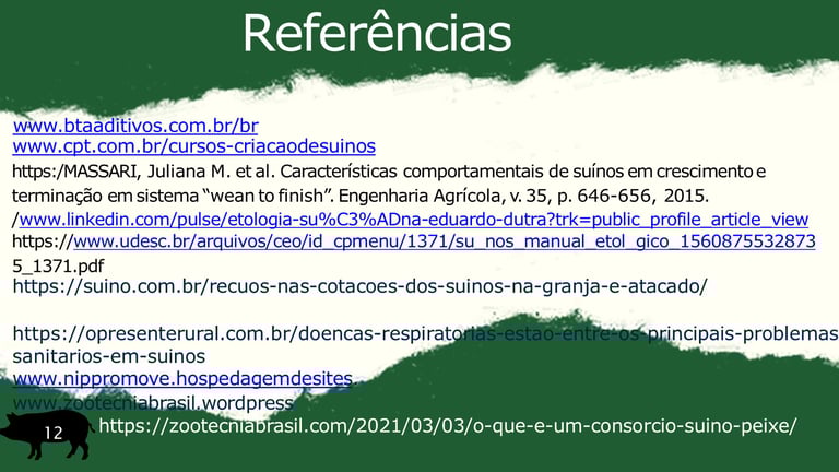 COSTA, A. N.; MARTINS, T. Produção e bem-estar animal aspectos técnicos e éticos da produção intensiva de suínos. Ciência Veterinária nos Trópicos, 11, 43-48. 2008.