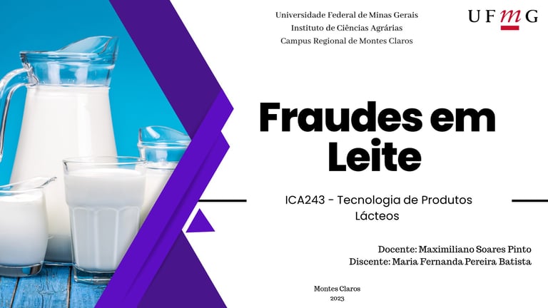 Fraudes no Leite Autora: Maria Fernanda Pereira Batista Disciplina: Extensão Rural Curso: Zootecnia Prof. Délcio César Cordeiro Rocha ICA/UFMG