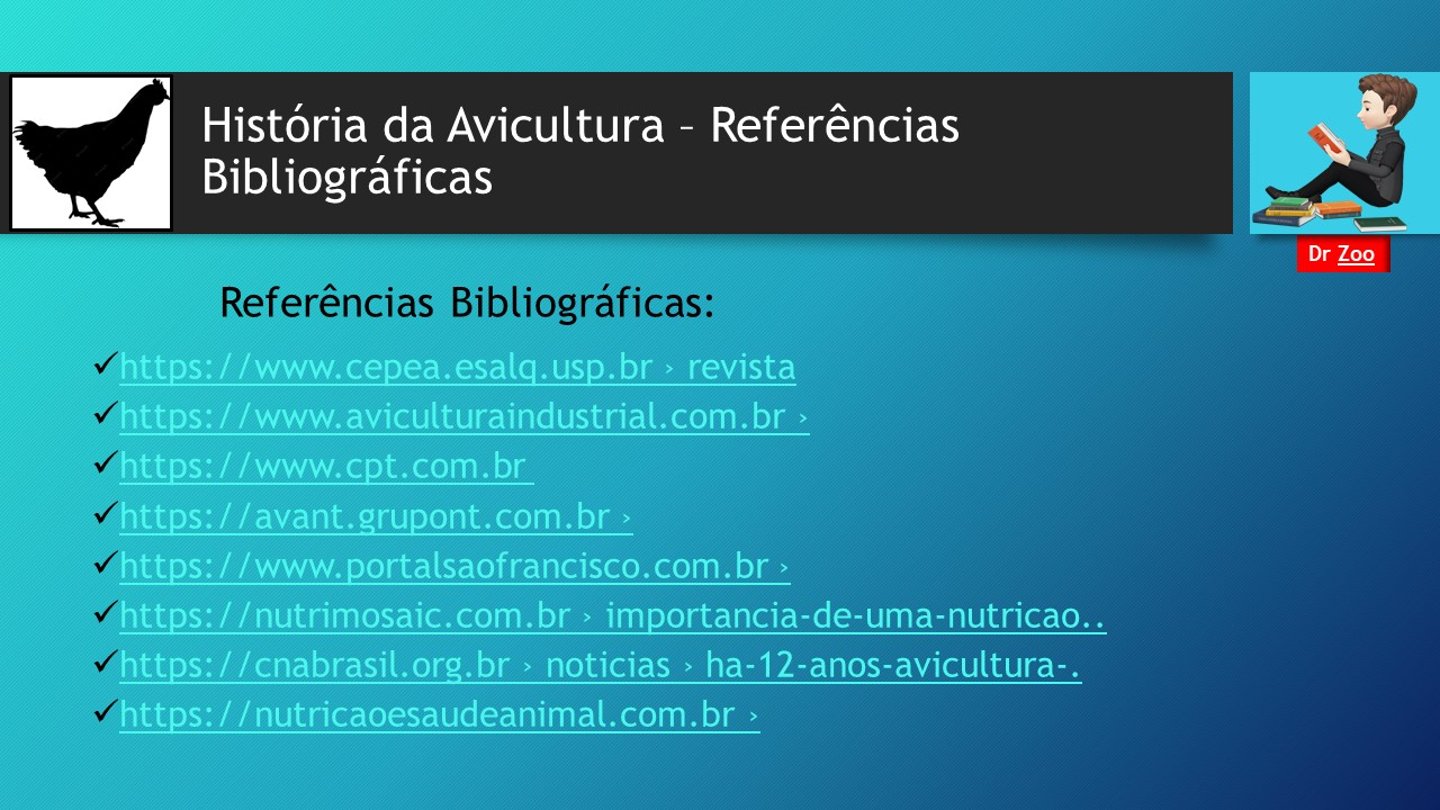 Portal AMBIENTE EM FOCO. ROCHA, Délcio César Cordeiro. A História da Avicultura. Projetos: Aprendendo com as Plantas e Animais na Min Fazenda/ Eco Cidadão do Planeta. Série: Comportamento e Bem Estar Animal. Ponto de Vista/Artigo técnico nº1. publicado em 2024. Disponível em: https://ambienteemfoco.com/historia-da-avicultura . Acesso em DIA/ MÊS/ ANO.
