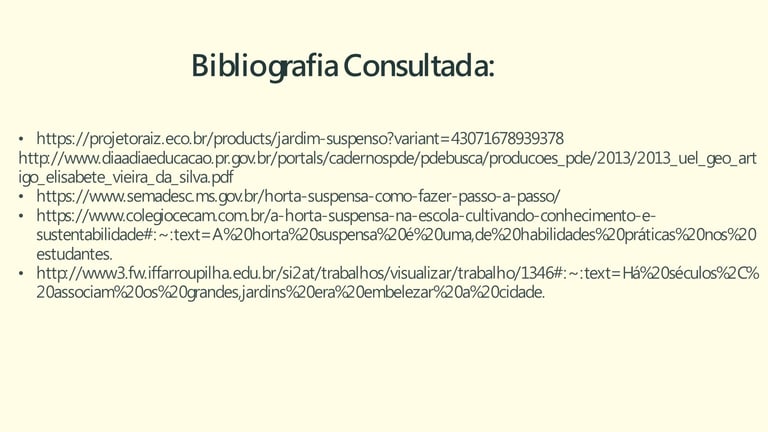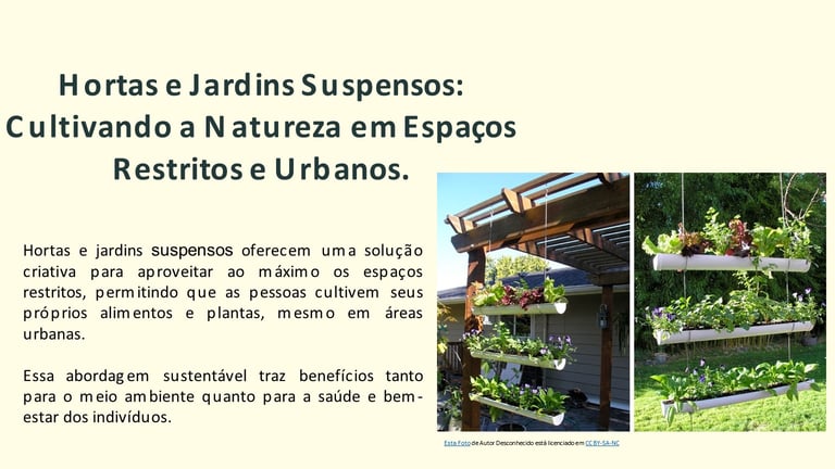 Portal AMBIENTE EM FOCO. LIMA, Giovanna Antonielly Gomes.; ROCHA, Délcio César Cordeiro. Hortas e Jardins Suspensos - Série Vida e Ambiente. Disponível em: https://ambienteemfoco.com/hortas-e-jardins-suspensos-serie-vida-e-ambiente. Série: Vida e Ambiente/ Educação e Ambiental. Ponto de Vista/Artigo técnico nº1. publicado em 2024. Acesso em DIA/ MÊS/ ANO