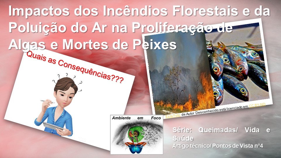 Portal AMBIENTE EM FOCO. ROCHA, Délcio César Cordeiro. Impactos dos Incêndios Florestais e da Poluição do Ar na Proliferação de Algas e Mortes de Peixes. Disponível em: https://ambienteemfoco.com/impactos-dos-incendios-florestais-e-da-poluicao-do-ar-na-proliferacao-de-algas-e-mortes-de-peixes Série: Eco Cidadão do Planeta/ Queimadas/ Vida e Saúde. Artigo técnico/Conscientização/Ponto de Vista nº4. Publicado em 2023. Acesso em DIA/ MÊS/ ANO