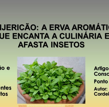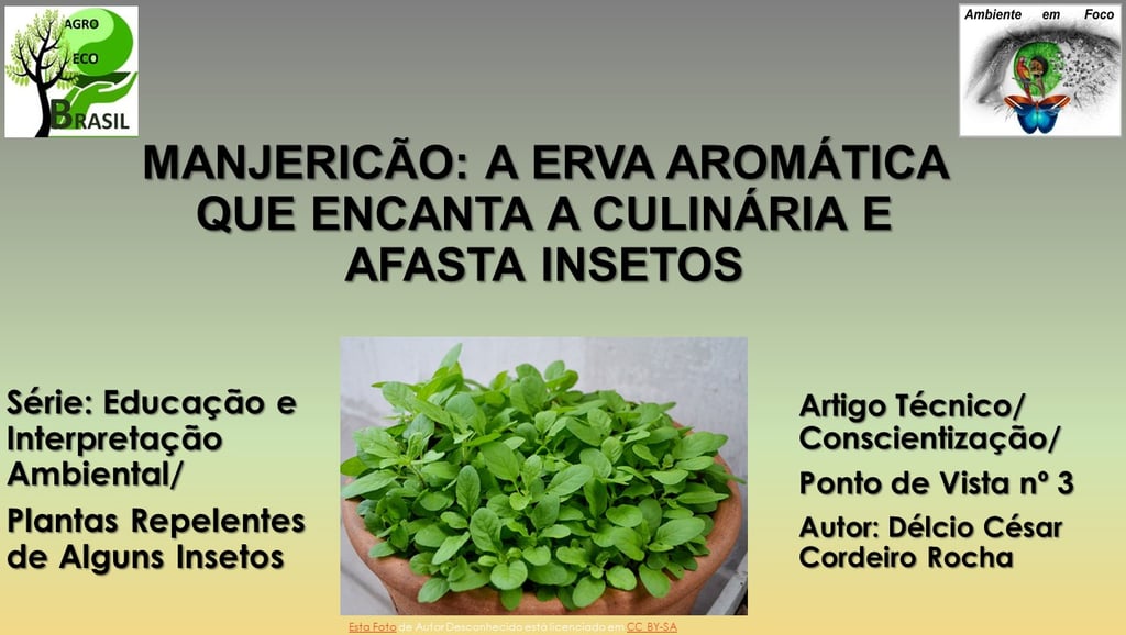 Portal AMBIENTEEMFOCO. ROCHA, D. C. C. Manjericão: A Erva Aromática que Encanta a Culinária e Afasta Insetos. Disponível em: https://ambienteemfoco.com/manjericao-a-erva-aromatica-que-encanta-a-culinaria-e-afasta-insetos. Série: Educação e Interpretação Ambiental/ Plantas Repelentes de alguns Insetos. Artigo técnico/Conscientização/Ponto de Vista nº 3. Publicado em 2023. Atualizado em 2024. Acesso em DIA/ MÊS/ ANO