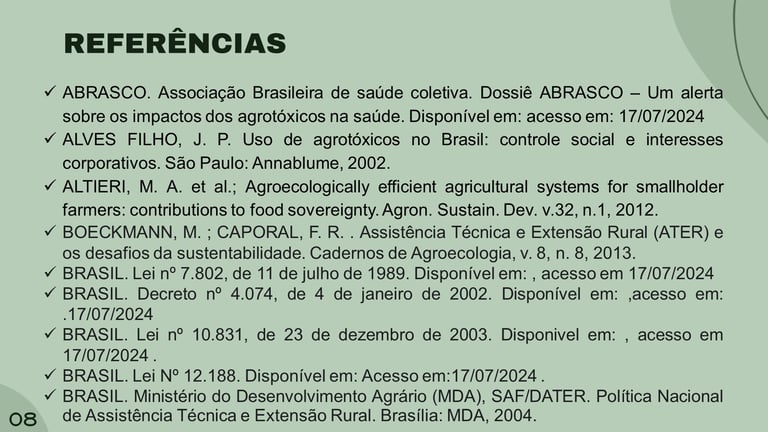 BRASIL. Lei nº 7.802, de 11 de julho de 1989. Disponível em: , acesso em 17/07/2024