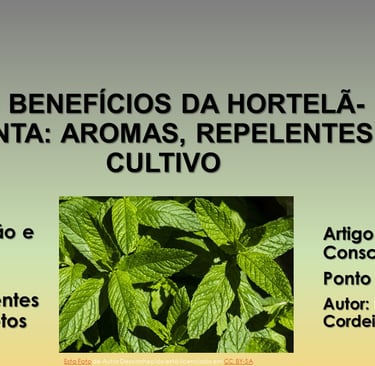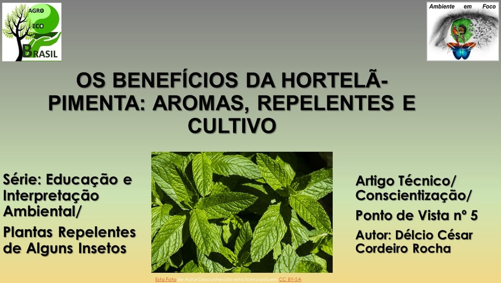 Portal AMBIENTEEMFOCO. ROCHA, D. C. C. Os Benefícios da Hortelã-Pimenta: Aromas, Repelentes e Cultivo Disponível em: https://ambienteemfoco.com/os-beneficios-da-hortela-pimenta-aromas-repelentes-e-cultivo. Série: Educação e Interpretação Ambiental/ Plantas Repelentes de alguns Insetos. Artigo técnico/Conscientização/Ponto de Vista nº 5. Publicado em 2023. Atualizado em 2024. Acesso em DIA/ MÊS/ ANO