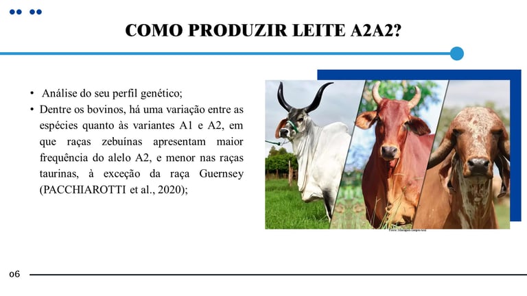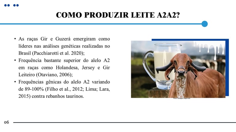 Em outro estudo brasileiro, a frequência de alelo A2 em animais da raça Guzerá foi de 97%, e 93% apresentaram o genótipo A2A2. No Gir, a frequência do alelo A2 foi de 98%, e 96% dos animais apresentaram o genótipo A2A2. Esses resultados revelam o potencial genético das raças zebuínas para a produção de leite A2.