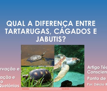Portal AMBIENTE EM FOCO. ROCHA, Délcio César Cordeiro. Qual a diferença entre Tartarugas, Cágados e Jabutis? Disponível em: https://ambienteemfoco.com/qual-a-diferenca-entre-tartarugas-cagados-e-jabutis Série: Conservação e Manejo de Fauna/Educação e Interpretação Ambiental/ Quelônios. Artigo Técnico/Conscientização/Ponto de Vista nº15 Publicado em 2023. Acesso em DIA/ MÊS/ ANO