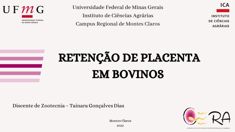 Retenção de Placenta em Bovinos Autor (a:) Tainara Gonçalves Dias Curso: Zootecnia Prof. Délcio César Cordeiro Rocha ICA/UFMG