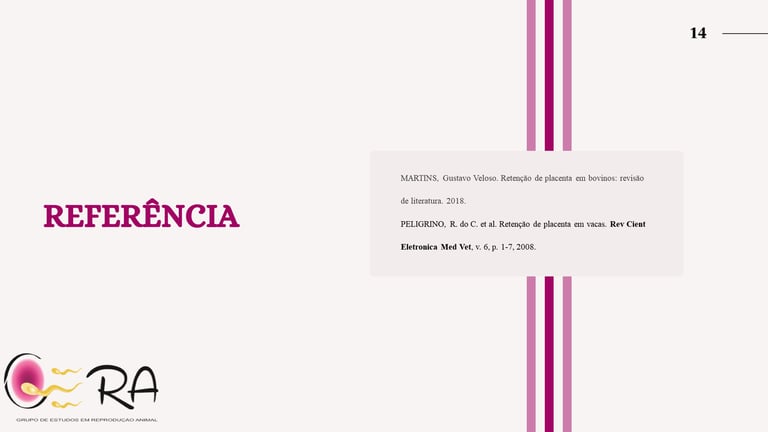 PELIGRINO, R. do C. et al. Retenção de placenta em vacas. Rev Cient Eletronica Med Vet, v. 6, p. 1-7, 2008.