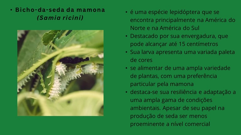 · Destaca-se sua resiliência e adaptação a uma ampla gama de condições ambientais,apesar de seu papel na produção de seda ser menos proeminente a nível comercial