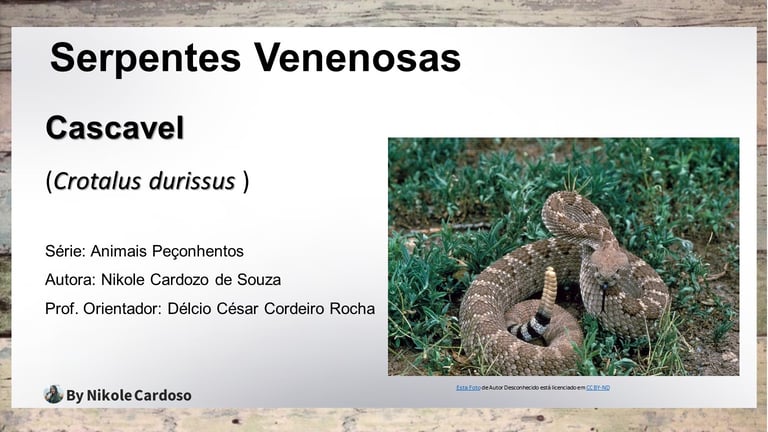 Série: Animais Peçonhentos- Serpentes 3 Autora: Nikole Cardoso de Sousa Prof. Orientador: Délcio César Cordeiro Rocha