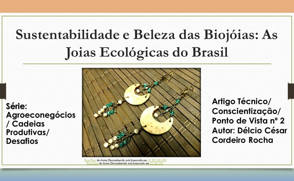Portal AMBIENTE EM FOCO. ROCHA, Délcio César Cordeiro. Sustentabilidade e Beleza das Biojóias: As Joias Ecológicas do Brasil Disponível em: https://ambienteemfoco.com/a-beleza-e-sustentabilidade-das-biojoias-joias-ecologicas-do-brasil. Série: Biojóias/ Agroeconegócios. Ponto de Vista/Artigo técnico nº2. publicado em 2025. Acesso em DIA/ MÊS/ ANO