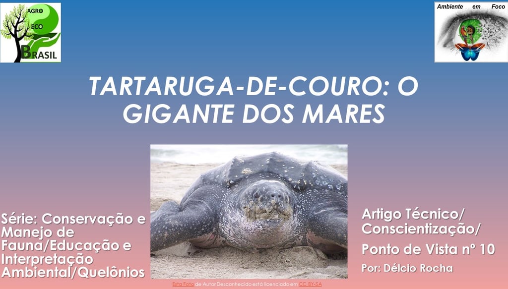Portal AMBIENTE EM FOCO. ROCHA, Délcio César Cordeiro. Tartaruga-de-Couro: O Gigante dos Mares. Disponível em: https://ambienteemfoco.com/tartaruga-de-couro-o-gigante-dos-mares. Série: Conservação e Manejo de Fauna/Educação e Interpretação Ambiental/ Quelônios. Artigo Técnico/Conscientização/Ponto de Vista nº10 Publicado em 2023. Acesso em DIA/ MÊS/ ANO