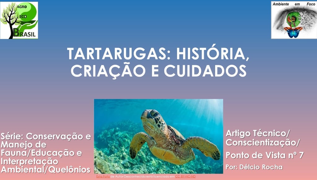 Portal AMBIENTE EM FOCO. ROCHA, Délcio César Cordeiro. Tartarugas: História, Criação e Cuidados. Disponível em: https://ambienteemfoco.com/tartarugas-historia-criacao-e-cuidados Série: Conservação e Manejo de Fauna/Educação e Interpretação Ambiental/ Quelônios. Artigo Técnico/Conscientização/Ponto de Vista nº7. Publicado em 2023. Acesso em DIA/ MÊS/ ANO