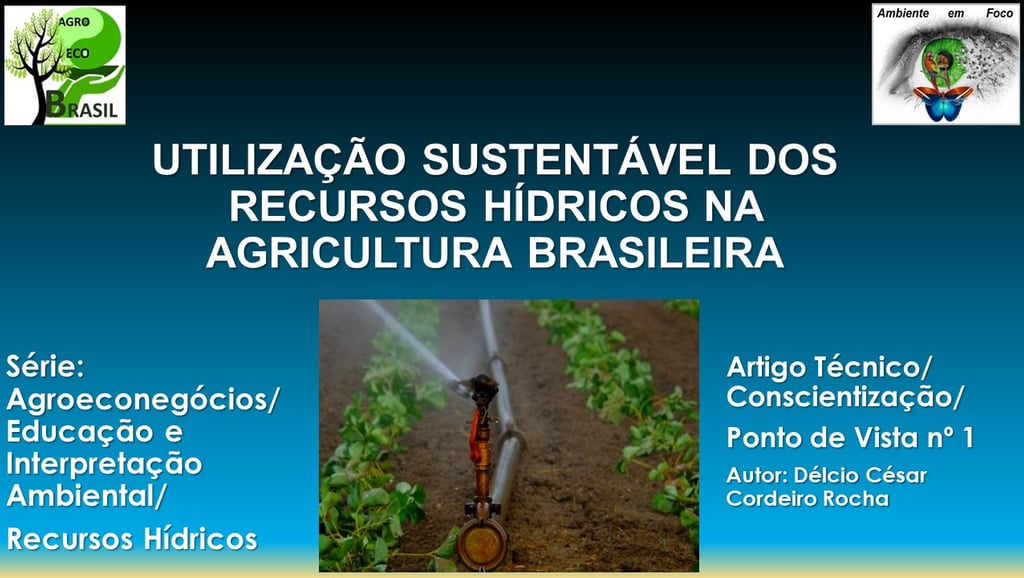 Portal AMBIENTEEMFOCO. ROCHA, D. C. C. Utilização Sustentável dos Recursos Hídricos na Agricultura Brasileira. Disponível em: https://ambienteemfoco.com/utilizacao-sustentavel-dos-recursos-hidricos-na-agricultura-brasileira. Série: Perigo em Foco. Artigo técnico/Conscientização/Ponto de Vista nº 1. Publicado em 2024. Acesso em DIA/ MÊS/ ANO